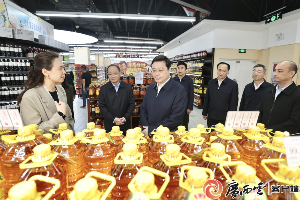 正在青秀万达广百家超市,韦韬走访粮油、蔬果、生鲜肉品等区域,扣问商品供应、食物平安检测及价钱等环境,确保节日期间主要平易近生商品供应平稳有序。广西云-广西日报记者 邓华 摄?。